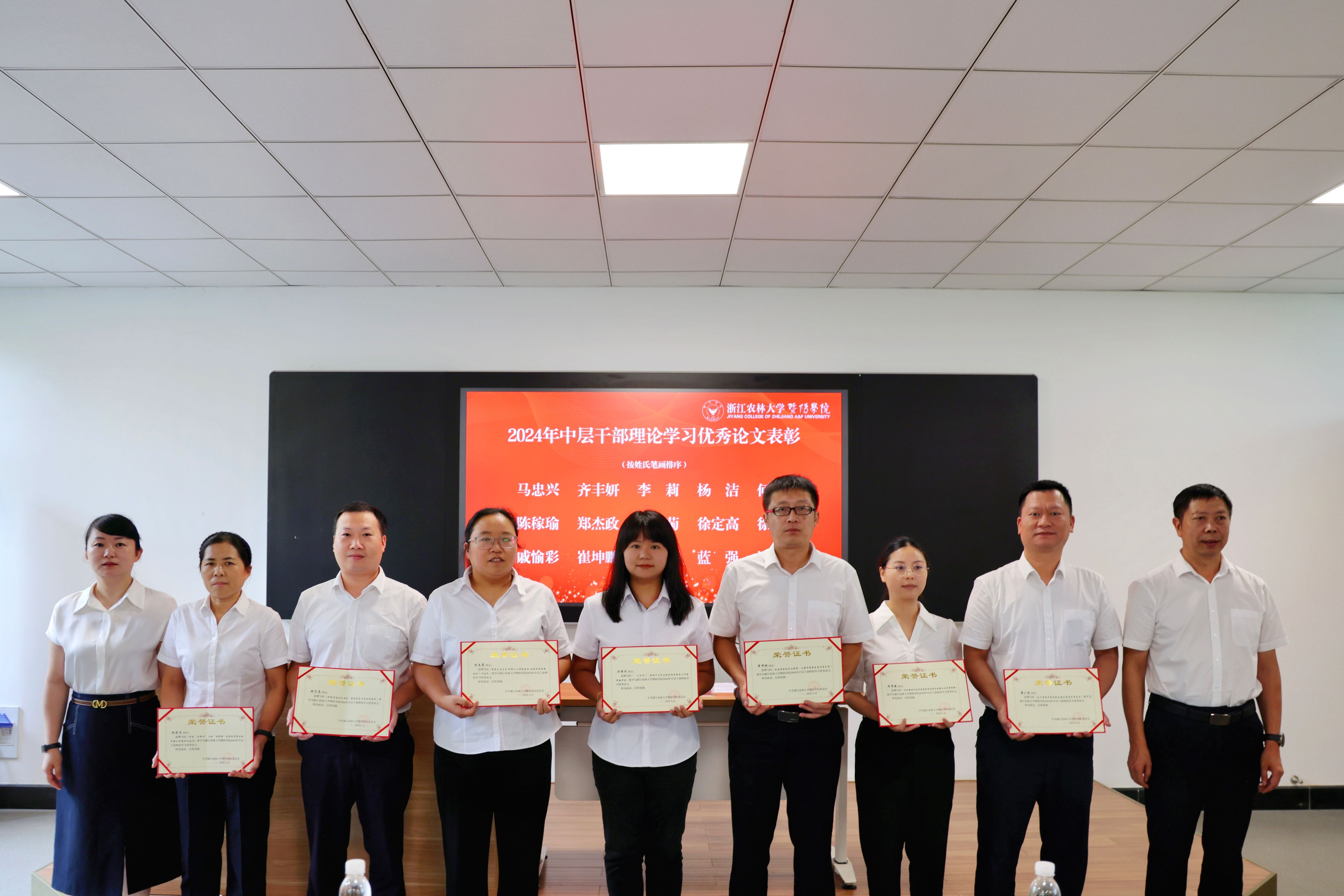 培训期间,全体中层干部前往安吉余村“绿水青山就是金山银山”理念诞生地开展现场学习,学院纪检室安排了党风廉政学习教育,学院表彰了2024年中层干部理论学习优秀论文。
